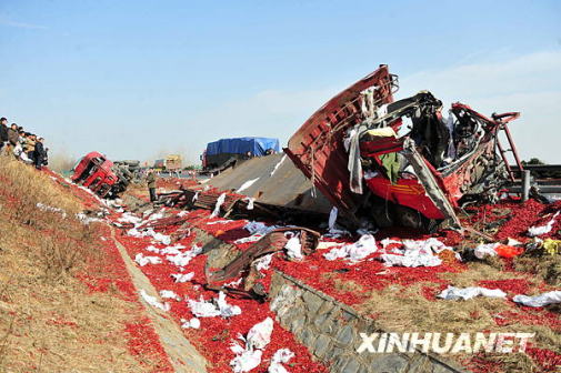 新華網(wǎng)武漢12月5日電(記者李鵬翔)5日零時20分,一輛裝載黑火藥的江西籍大貨車行駛至京珠高速湖北段時起火發(fā)生爆炸,造成現(xiàn)場4人死亡,高速路面嚴重損毀,并造成附近10個行政村共有2000余戶民房不同程度受損,29名村民受傷。