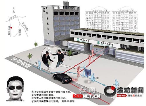 據(jù)警方發(fā)布的消息稱,犯罪嫌疑人為男性,40歲左右,身高約1.70米,中等體態(tài),較結(jié)實(shí),皮膚較黑,行走時(shí)腰桿挺直,作案時(shí)利用墨鏡、帽子作偽裝,穿深色衣服,深色褲子,著裝不講究。請(qǐng)廣大群眾結(jié)合公安機(jī)關(guān)公布的視頻錄像和模擬畫像進(jìn)行辨認(rèn),如有知情者,請(qǐng)速撥打“110”電話或與長(zhǎng)沙市公安局刑偵支隊(duì)聯(lián)系,聯(lián)系人洪警官:0731-85010202、13574849110。對(duì)提供重要線索抓獲犯罪嫌疑人或直接抓獲犯罪嫌疑人的,公安機(jī)關(guān)將獎(jiǎng)勵(lì)人民幣20萬元。