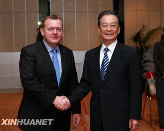 12月17日,中國國務院總理溫家寶在哥本哈根會見丹麥首相拉斯穆森。新華社記者 龐興雷