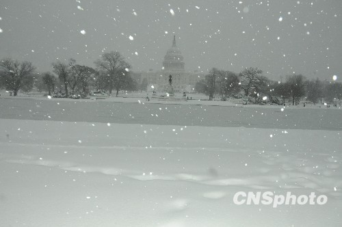 當(dāng)?shù)貢r(shí)間12月19日,美國東海岸廣大地區(qū)遭受暴風(fēng)雪襲擊,圖為當(dāng)日大雪紛飛中的美國華盛頓國會(huì)山。美國國家氣象局預(yù)測,包括華盛頓、巴爾的摩、費(fèi)城和紐約在內(nèi)的東海岸中部地區(qū)積雪將達(dá)五十厘米。氣象專家稱,華盛頓的大雪或許是自一九三二年以來十二月的歷史性最大降雪。 中新社發(fā) 吳慶才 攝