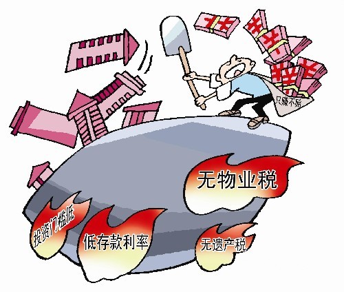 新聞背景:資金充沛、四面出擊的“炒房團”,被認為是房價持續(xù)上漲的推手之一。據(jù)了解,近年來,特別是國際金融危機爆發(fā)以來,我國各地節(jié)節(jié)攀升的房價,已讓部分“炒房”者產(chǎn)生了房價“只漲不跌”“買房只賺不賠”“政府對房價調低不調高”等心理,投資信心很足。部分“炒房”者認為,我國人多地少、城市化加速的國情,決定了住房是稀缺資源。特別是在無物業(yè)稅、遺產(chǎn)稅等稅種支出,以及... 中新社發(fā) 司海英 攝