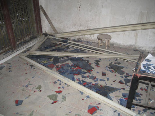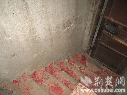 不明真相的人往屋里扔點燃的鞭炮,圖為鞭炮殘屑