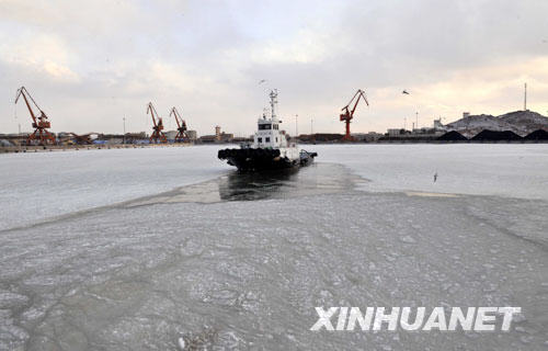 渤海和黃海北部沿岸出現(xiàn)近30年來最嚴重海冰冰情。1月12日,一艘拖船行駛在結(jié)冰的山東萊州港內(nèi)。 受近日寒潮大風天氣影響,山東渤海和黃海北部沿岸出現(xiàn)近30年來最嚴重海冰冰情,萊州灣海域500多條漁船受困,對當?shù)厝罕娚a(chǎn)、生活造成較大影響。當?shù)剡叿、漁政等涉海部門已啟動應急預案,全力救助受困群眾。1月12日,國家海洋局北海分局向遼東灣發(fā)布海冰警報,提醒渤海和黃海北部沿海各部門和單位做好相關準備。新華社記者 朱崢攝