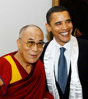 2005年,達(dá)賴在竄訪美國(guó)期間,曾與還是議員的奧巴馬有過一面之交