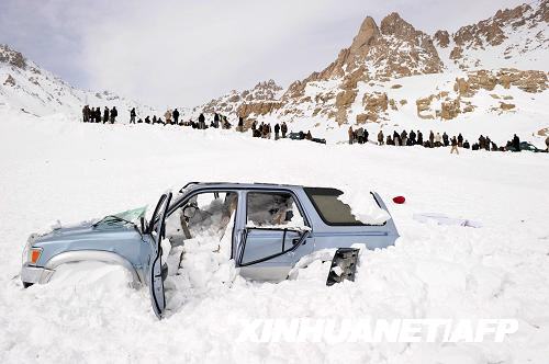 美聯(lián)社報道,數(shù)以噸計冰雪隨20多次雪崩傾瀉到薩朗山口,堵住道路,埋沒數(shù)以百計過往車輛。