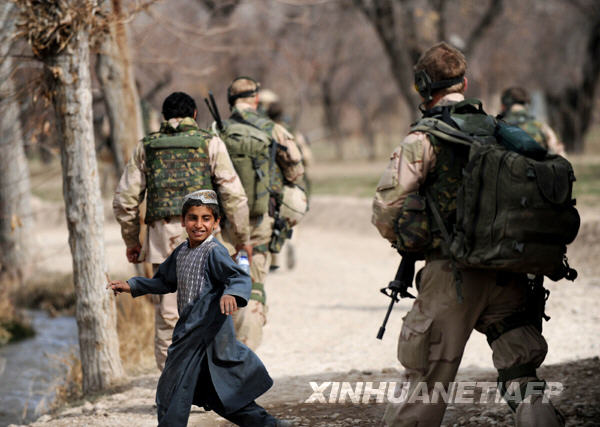 這是2010年1月21日在阿富汗南部烏魯茲甘省拍攝的一個(gè)當(dāng)?shù)啬泻⒒仡^看荷蘭士兵巡邏。荷蘭首相巴爾克嫩德2月20日宣布,由于在阿富汗撤軍問(wèn)題上無(wú)法達(dá)成一致,執(zhí)政聯(lián)盟中第二大黨工黨將退出執(zhí)政聯(lián)盟,致使執(zhí)政聯(lián)盟垮臺(tái)。 新華社/法新