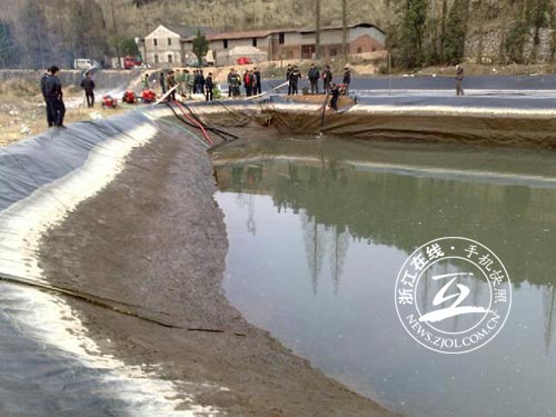 昨天下午5點(diǎn)左右,事發(fā)地封鎖解除后,記者來到了龍珠潭水庫下與養(yǎng)魚塘連接的蓄水池旁,只見蓄水池四壁光滑,坡度很陡,表面覆蓋著一層黑色薄膜,旁邊并無警示牌。王燮蛟介紹,水池最深處2米,在發(fā)現(xiàn)三具孩子尸體的地方,警方發(fā)現(xiàn)水池壁上有滑痕。