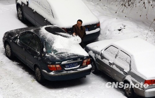 2月23日,新疆烏魯木齊市降下小雪,一位市民清理車頂?shù)姆e雪準備出行。據(jù)新疆氣象臺介紹,新疆奎屯、烏蘇等地遭受暴雪侵襲,積雪厚度已達50至60厘米。來自西西伯利亞的冷空氣21日再一次襲擊新疆北疆地區(qū),受此影響北疆各地、天山山區(qū)、哈密北部有微到小量的雪或雨夾雪,其中伊犁河谷、阿勒泰、塔城等地的部分地區(qū)可達中到大量。 中新社發(fā) 劉新 攝