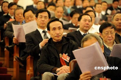 資料圖:2009年全國兩會(huì)期間,演員鞏漢林在聽會(huì)。 中新社發(fā) 于潤杰 攝