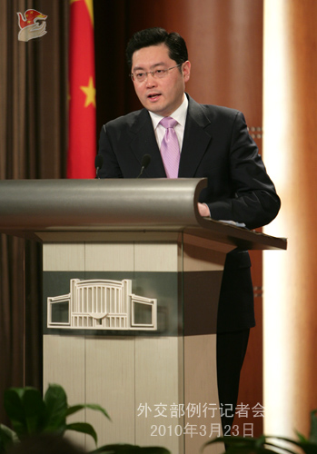 2010年3月23日,外交部發(fā)言人秦剛舉行例行記者會。答問如下。