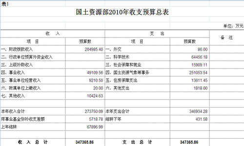 預(yù)算表1(來源:國土資源部網(wǎng)站)