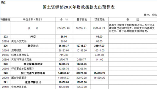 預(yù)算表2(來源:國土資源部網(wǎng)站)