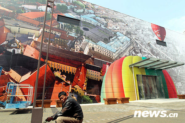 3月31日,工人正在立陶宛國家館前施工。4月1日,上海世博會將迎來開幕倒計時30天,目前,世博園區(qū)內(nèi)各項建設已進入尾聲,近萬名工人正加班加點,確保4月下旬世博園區(qū)如期投入試運營。新華社記者 任瓏攝