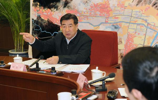 4月21日,中共中央政治局委員、國務(wù)院副總理、國務(wù)院抗震救災(zāi)總指揮部總指揮回良玉在北京主持召開總指揮部第八次全體會議。 新華社記者張鐸 攝