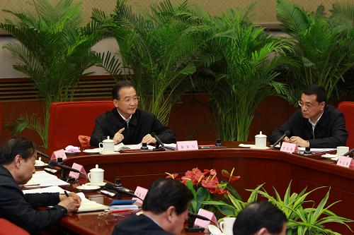 4月22日,中共中央政治局常委、國務(wù)院總理、國家能源委員會(huì)主任溫家寶在北京主持召開國家能源委員會(huì)第一次全體會(huì)議,聽取能源委辦公室關(guān)于當(dāng)前能源形勢與工作任務(wù)的匯報(bào)。中共中央政治局常委、國務(wù)院副總理、國家能源委員會(huì)副主任李克強(qiáng)出席會(huì)議并講話。新華社記者 龐興雷 攝