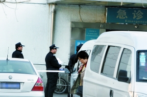23日下午,警方在懷柔第一人民醫(yī)院急診室外拉起警戒線
