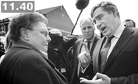 布朗當(dāng)天前往英格蘭西北部羅奇代爾與選民見面,在人群和媒體重重包圍下與吉莉恩·達(dá)菲交談大約5分鐘。
