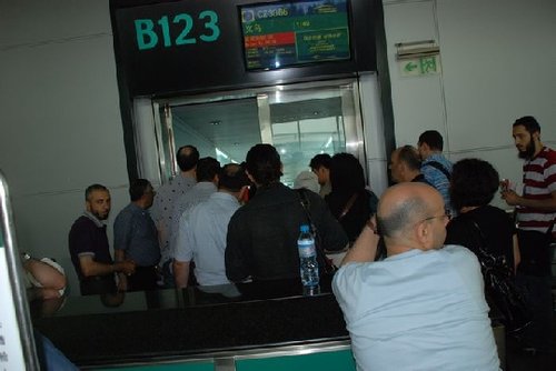 這個(gè)登機(jī)口,旅客正在跟機(jī)場(chǎng)人員爭(zhēng)吵。