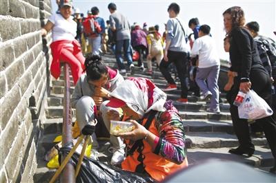 自2007年開始在長(zhǎng)城進(jìn)行清潔工作,高俊經(jīng)歷了6個(gè)十一黃金周。今年,高俊更是帶著自己還在上高一的女兒上長(zhǎng)城幫忙。