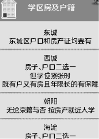 而相比之下,朝陽則更重視房產(chǎn)的價值。朝陽區(qū)今年按片區(qū)入學(xué),強(qiáng)調(diào)按房產(chǎn)就近入學(xué),這也意味著是否京籍不重要,只要有房產(chǎn)就可以就近入學(xué)。朝陽區(qū)按照房產(chǎn)的位置劃分40個片區(qū),片區(qū)內(nèi)學(xué)位不足時將向周邊片區(qū)延伸。如A小區(qū)如果有配套學(xué)校,只要在該小區(qū)有房產(chǎn)的就直接進(jìn)入學(xué)校。如果該校學(xué)位不夠,則在就近2至3個學(xué)校形成的片區(qū)解決。