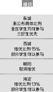 雖然市級教育主管部門對升學(xué)政策有著原則性的要求,但各個區(qū)縣的升學(xué)政策又有著各自的獨(dú)特性和差異性,加之發(fā)布的時間不統(tǒng)一,文件透明度不一致,讓極度關(guān)心此事的家長,往往看得眼花繚亂,最終還是一頭霧水。為此,北京青年報記者就四大區(qū)的升學(xué)政策進(jìn)行了綜合梳理,就讀者最為關(guān)心的教育公正公開透明指標(biāo)進(jìn)行比較,試圖描繪出一幅縮略圖,以此為標(biāo)尺,衡量哪個區(qū)的改革動作最大、升學(xué)政策最公平、教育資源最均衡、政策最透明……