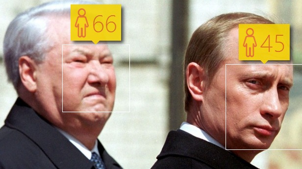 照片時(shí)間:2000年。普京2000年3月26日當(dāng)選俄羅斯總統(tǒng),當(dāng)時(shí)他48歲,“顏齡”測試給出的結(jié)果是45歲,基本吻合。