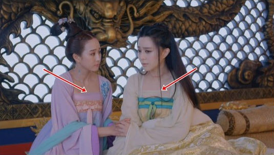 《武媚娘傳奇》在香港播出的版本,沒有打馬賽克,畫面也沒有經(jīng)過才裁切,反而是通過后期制作加上“小背心”,毫無(wú)違和感的加工獲得不少好評(píng)。(圖片來(lái)源于網(wǎng)絡(luò))