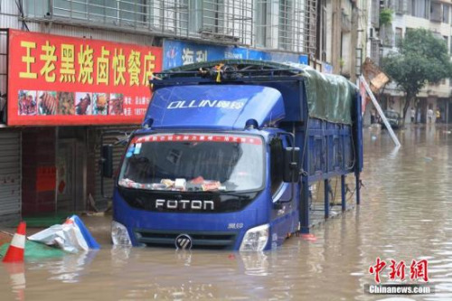 6月15日,廣西柳州市三江縣突降暴雨,引發(fā)嚴重內(nèi)澇,縣城變“澤國”。 蘇慶超 攝