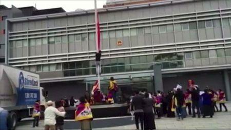 中國駐悉尼總領(lǐng)館副總領(lǐng)事湯瑛說,22日中午,悉尼“藏青會”糾集60多人在總領(lǐng)館門前示威。下午1時15分許,示威人群中的30余人乘隙突破澳大利亞警方設(shè)置的防線,沖入總領(lǐng)館前院,向主樓玻璃門沖撞,并投擲石塊。當(dāng)天館區(qū)內(nèi)國旗因向萬里同志致哀處于降半旗狀態(tài),一些“藏獨(dú)”分子借機(jī)扯下了國旗。