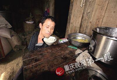 由于母親上月生病臥床不起,手腳無力,他不得不以自己特有的方式給母親喂飯——先用嘴銜起飯勺,從電飯煲里一勺一勺舀出半碗米飯,然后蹲下身子,歪著下巴把飯碗挪到肩膀上夾穩(wěn),再“端”進(jìn)母親的房間,俯下身子把碗放到母親床邊,再俯身讓母親扶著他的肩膀慢慢坐起來。然后,他用嘴銜起湯匙,舀飯湊到母親嘴邊,一勺、兩勺、三勺……直到母親搖頭為止。