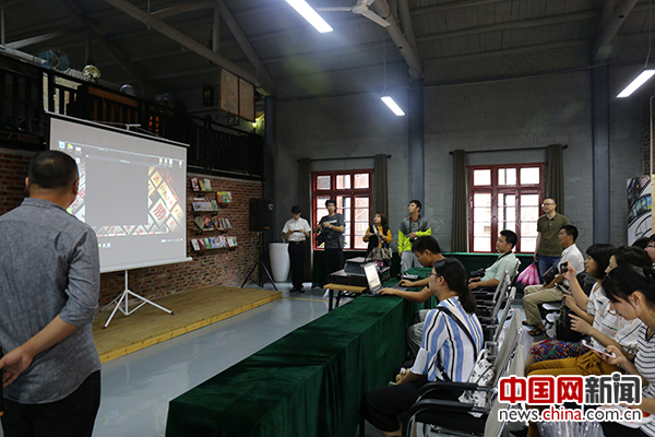 贛坊1969園區(qū)多功能辦公室內(nèi)記者和游客在觀看創(chuàng)意短片。中國(guó)網(wǎng) 郭澤涵攝