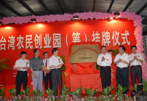中國國民黨副主席江丙坤、湖北省及武漢市領(lǐng)導(dǎo)為武漢(武湖)臺灣農(nóng)民創(chuàng)業(yè)園掛牌(圖片來源:武漢市臺辦)