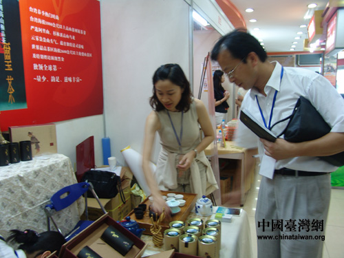 展會上的花東金針和土雞油蔥酥吸引了不少參觀者上前詢問,來自花東奇雞養(yǎng)生集團(tuán)的負(fù)責(zé)人告訴記者,此次展銷會上展示的只是集團(tuán)中的部分產(chǎn)品,還有許多特色產(chǎn)品沒有在此展出。會場另一端,有來自欣松集團(tuán)的茶文化展示也吸引了不少參觀者,許多嘉賓一邊欣賞茶道表演,一邊品嘗香醇的臺灣特色茶葉。(陳寧)