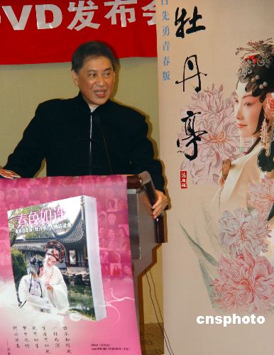 十月九日,白先勇在北京首發(fā)推介青春版《牡丹亭》DVD《牡丹一百》,以紀(jì)念該劇演出超過百場。 中新社發(fā) 應(yīng)妮 攝