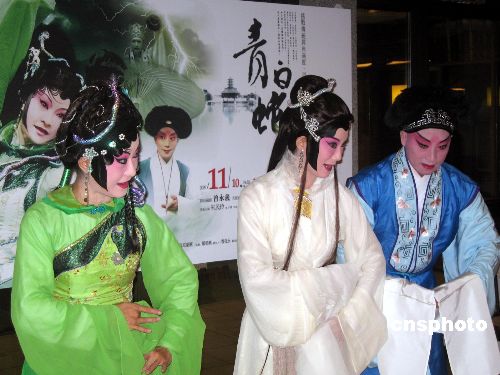 《青白蛇》導演沈斌表示,臺灣愛聽戲、會聽戲甚至就是戲曲票友的人非常多。一九九二年,上海昆劇團帶著昆劇《長生殿》首次赴臺演出時,盛況空前。當時,他就是《長生殿》的導演。十多年過去了,臺灣觀眾的熱情始終不減!盀榱藢驇缀跄昴陙恚袝r一年來幾次、一次住上好幾個月!彼嬖V記者,事實上,《青白蛇》是他與曾永義先生的第三次合作。今年三月,他們“第二次握手”推出了昆劇《孟姜女》,在臺北“國家劇院”連演三場,好評如潮。饒有趣味的是,《孟姜女》的演員全部由臺灣戲曲學院的京劇演員擔綱,京劇演員唱昆曲,頗具新意。沈斌透露,明年三月他與曾永義先生會一同帶著《孟姜女》北上西進,赴北京、上海、蘇州、廈門進行交流演出。