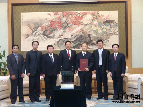國務(wù)院臺灣事務(wù)辦公室主任陳云林向中國第二歷史檔案館贈送紀(jì)念鼎