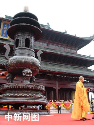 落成典禮由蘇州市佛教協(xié)會副會長、寒山寺方丈秋爽大和尚主持,中國佛教協(xié)會會長一誠法師,中國佛教協(xié)會副會長明學(xué)法師、明生法師、覺醒法師、臺灣星云長老、泰國仁得副僧王等海內(nèi)外高僧,和中央、江蘇省、蘇州市各有關(guān)部門的領(lǐng)導(dǎo),及社會各界數(shù)萬人共同參加了慶典儀式佛像開光法會。