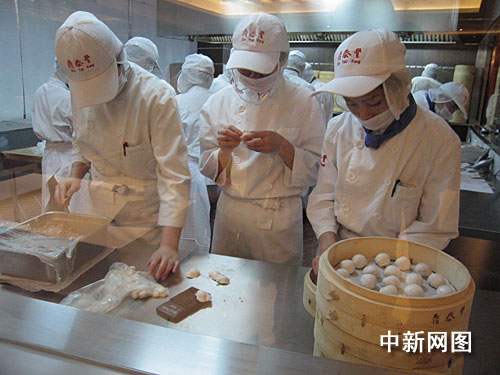 圖為鼎泰豐天津店員工正在手工制作傳統(tǒng)面點(diǎn)。 作 者:田齊