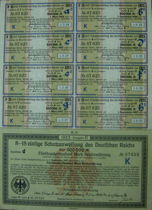 臺北市的蘇文朗,當(dāng)年祖父是士林紙廠的干部,他五歲時,曾看過祖父拿出兩張鈔票大小的“彩色紙片”用來包煙草。當(dāng)時他好奇地纏著祖父問,這些“圖畫紙”是哪里來的。祖父抽了一口煙,緩緩地說:“這不是圖畫紙,是外國錢。”原來祖父當(dāng)年奉命要以馬克債券作為紙廠員工工資,但心軟的祖父預(yù)感這些“外國錢”兌換無門,因此家境富裕的他,干脆自掏腰包發(fā)薪水,而這些馬克債券就成了祖父嘴邊的彩色煙卷。