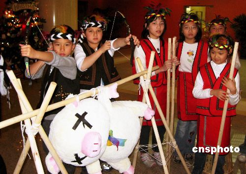 十二月十五日,隨父母移居上海的臺(tái)灣小學(xué)生,在上海熱演富有高山族風(fēng)情的“原鄉(xiāng)之舞”,迎接即將到來(lái)的新年。當(dāng)天,一年一度的“原鄉(xiāng)杯”臺(tái)胞青少年大賽在上海落幕,來(lái)自上海、臺(tái)北兩地的千余名臺(tái)灣少年參與比賽,獲獎(jiǎng)的佼佼者匯聚上海迎新年、“秀”才藝。這一跨越臺(tái)灣海峽的臺(tái)胞青少年交流活動(dòng),由上海市臺(tái)灣同胞聯(lián)誼會(huì)主辦。 中新社發(fā) 許曉青 攝