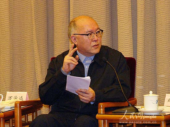 浙江省原省長、人事部原副部長萬學(xué)遠(yuǎn)在座談會上發(fā)言。