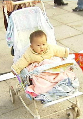 最年幼的助威者:別小看了這個(gè)推車(chē)?yán)锏男ABY,他也是助威拉拉隊(duì)。只有四個(gè)月大的他手揮旗幟,情緒高昂,可謂是精神頭兒最足的小小助威者。