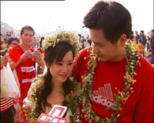 用時(shí)最長(zhǎng)獎(jiǎng):5公里說(shuō)長(zhǎng)不長(zhǎng),說(shuō)短也不短,走完全程也不過(guò)1個(gè)多小時(shí)。但就是這段距離,有人卻足足跑了七年之久。今年有一對(duì)情侶在跑完馬拉松5公里賽之后,在眾人的祝福聲中舉行了婚禮。據(jù)說(shuō),他們的這段愛(ài)情長(zhǎng)跑,一跑就是七年。這對(duì)新人說(shuō),今年是奧運(yùn)年,這也算是他們支持奧運(yùn)的一種方式。七年的愛(ài)情長(zhǎng)跑用馬拉松的方式修成正果,再應(yīng)著2008奧運(yùn)年的喜慶,這對(duì)新人干脆把“最受關(guān)注獎(jiǎng)”一起抱回家吧。