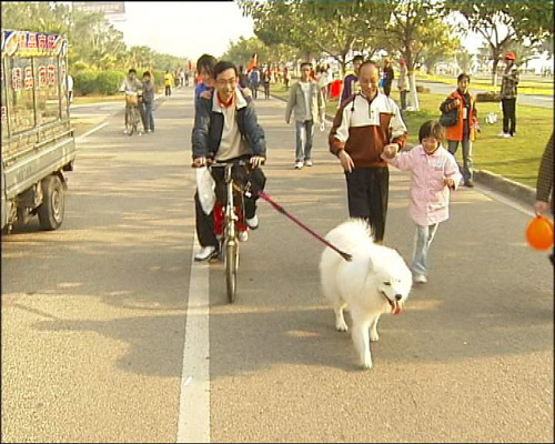 最喧賓奪主的助威者:今年有廈門(mén)市民甚至把心愛(ài)的寵物犬也帶到了比賽現(xiàn)場(chǎng)。渾身雪白的薩摩犬出現(xiàn)在美麗的賽道上,眾人的目光不由得被吸引。全民健身,狗狗也不缺席。