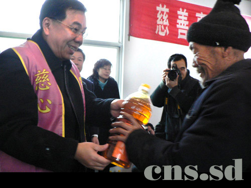 中新山東網(wǎng)濟(jì)南1月11日電(通訊員 趙連友 趙慧)臺(tái)灣慈心慈善事業(yè)基金會(huì)創(chuàng)辦人、董事長(zhǎng)謝政達(dá)先生,今天冒雨來(lái)到山東省棗莊市山亭區(qū)西集鎮(zhèn),為700戶特困群眾送來(lái)了春節(jié)禮物:1750公斤食油和1.75萬(wàn)公斤大米。
