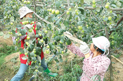 潮州日報訊(盧寧銳 攝) 潮安縣名優(yōu)水果生產(chǎn)基地的臺灣蜜棗喜獲豐收。去年畝產(chǎn)約有6000公斤?,沉甸甸的果實(shí)把枝頭壓彎了,果農(nóng)正在搭建竹架支撐。