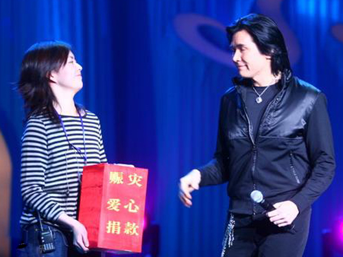 “愛心大使”費(fèi)翔向?yàn)?zāi)區(qū)捐款。