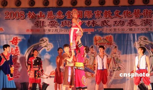 記者十七日下午在臺北市重要的宗教場所松山慈惠堂的大禮堂看到,數(shù)千市民將禮堂擠得水泄不通。堂主郭葉子介紹,從十六日起,云南藝術(shù)團在松山慈惠堂一連五天義演,每天下午和晚上各演一場。