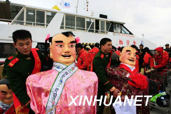 2月17日,來自馬祖的演出道具運抵馬尾。當日,57名馬祖代表團演出及工作人員通過“兩馬”航線抵達福州馬尾,將在元宵節(jié)前后參加“兩馬同春鬧元宵”活動。來自馬尾、馬祖的同胞將相聚一起,用煙花、歌舞、燈會等活動慶祝元宵節(jié)。新華社記者 魏培全 攝