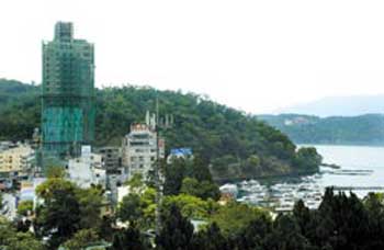 看好大陸觀光客商機(jī),打著房價(jià)一晚一萬六千元起跳、號(hào)稱住宿等級(jí)比涵碧樓更高級(jí)的日月潭日月行館,去年才取得南投縣政府的BOT特許經(jīng)營權(quán),原本預(yù)估要兩年才能完工,現(xiàn)在則是日夜趕工,計(jì)劃提前半年完工營運(yùn)。轟轟的機(jī)具聲,讓住在旁邊的“觀光局”日月潭風(fēng)景管理處長曾國基都抱怨說:“半夜兩點(diǎn)都會(huì)被嚇醒。”